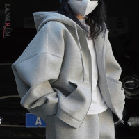 [Lanmrem]-سويت شيرت نسائي بغطاء رأس ، سويت شيرت فضفاض بأكمام طويلة برباط وسحاب ، بلون واحد ، ربيع ، جديد ،
