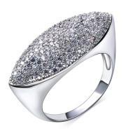 حلقة طويلة بيضاوية الشكل للنساء ، صغيرة الحجم ، زركون مكعب لامع ، طلاء الروديوم الحقيقي ، مجوهرات عصرية فاخرة