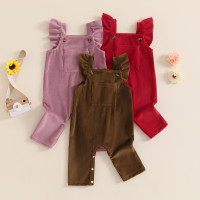 فوكوسنشورم-سروال قصير للأطفال الفتيات ، كم ذبابة كشكش ، تشذيب رقبة مربعة ، بذلة كاملة الطول مع جيب ، 0-24 م ، الصيف