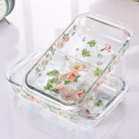 صينية خبز مستطيلة بالميكروويف ، أطباق زجاجية ، زهور ورعوية ، أرز مخبوز وصفيحة سلطة ، حاوية طعام ذات سعة كبيرة ، أدوات مائدة