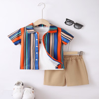 بدلة مخططة بأكمام قصيرة للأولاد من عمر 1 إلى 6 سنوات ، طقم من قطعتين للأطفال ، الصيف