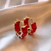 أقراط نسائية من سبائك النحاس ، كريستال مربع ، معدن الزركون ، لون أحمر ، مجوهرات فاخرة مثيرة ، إكسسوارات أنيقة ، جديدة ،