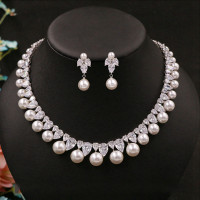 مكعب زركونيا حفر اللؤلؤ المستديرة نوبل حساسة الزفاف قلادة قلادة أقراط مجوهرات اكسسوارات الزفاف للنساء