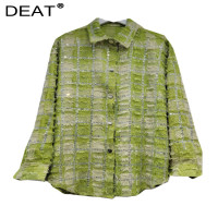 ديت-قميص دينم نسائي ، مرقع فضفاض ، حافة نتوءات ، مضطهدة ، متقلب ، صدر واحد ، بلوزة ماسية ، موضة جديدة ، خريف ،