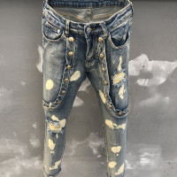 جينز للرجال ممزق للدراجات النارية مع ثقب مرقع ، بنطلون ممزق ، مرن ، ملابس الشارع الشهير ، الأزرق ، الربيع ، من من الخارج