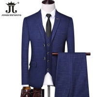 (سترة سترة السراويل) مدقق عادية الأعمال مكتب رجل دعوى مجموعة من ثلاثة واثنين العريس فستان الزفاف منقوشة دعوى الذكور