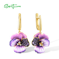 خواتین کے لیے SANTUZZA Pure 925 سٹرلنگ چاندی کی بالیاں چمکتی ہوئی گلابی اور جامنی پیونی اینمل پھول لٹکتی ہوئی خوبصورت عمدہ زیورات