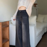 ونٹیج وائڈ ٹانگ جینز امریکن اسٹائل اونچی کمر والی ڈھیلی فٹ لمبی پتلون سیاہ سرمئی سیدھی ٹانگوں والی پتلون میں خواتین کے لیے