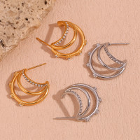ثلاث طبقات على شكل حرف C مايكرو مطعمة الزركون هوب أقراط هندسية 18K مطلية بالذهب مقاوم للماء فضي اللون 316L الفولاذ المقاوم للصدأ