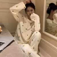 طقم بيجامات مخملية سميكة للنساء ، دافئ ولطيف ، فضفاض ، كاجوال ، منزلي ، شتوي
