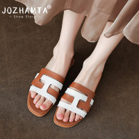 JOZHAMTA-كعب منخفض من الجلد الطبيعي للنساء ، شبشب مسطح ، حذاء كاجوال ، يومي ، منزلي ، شرائح ريترو ، صيف ، مقاس 34-40 ، Ins