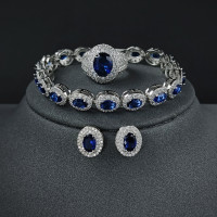 3 قطع حزمة اللون الأزرق العروس طقم مجوهرات هالة خاتم الخطوبة جولة قرط الاذن المرصع لهدية الزفاف J7605