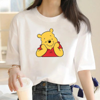تي شيرت قطني مطبوع من ديزني ويني ذا بو ، قميص بأكمام قصيرة ، توب كرتوني لطيف للسيدات ، طراز أوربي وأمريكي