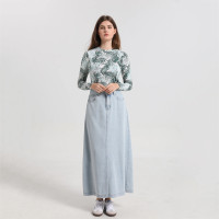 قماش جيرسي مطاطي بطباعة AP للنساء ، تي شيرت ملفوف ، يمكن مطابقته ، فستان بحزام موسلين أبيض ، الربيع ، الصيف ،
