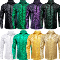 قمصان من الحرير الجاكار للرجال ، بأكمام طويلة ، طية صدر السترة ، الأعمال ، الزفاف ، رعاة البقر ، جودة عالية ، الأزرق ، الذهب ، الأخضر ، الأرجواني ، الأبيض ، الأسود