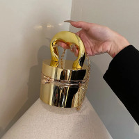 صندوق ذهبي حقيبة يد لامعة للنساء ، مخلب عالية الجودة ، سلسلة معدنية ، محفظة رسول ، الطرف ، مساء ، والأزياء