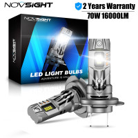 مصباح LED فائق السطوع من novilo H7 مصباح أمامي بمصابيح مقاس 1:1 مصباح أمامي صغير 70 وات 16000LM بمروحة أضواء سيارة 6500K أبيض H7