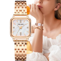 العلامات التجارية الفاخرة النساء ساعة كوارتز موضة ساحة مع الماس صدف سطح تصميم الذهب الملونة غرامة حزام معدني الساعات