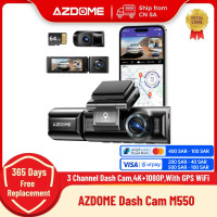 أزدوم 3 قناة اندفاعة كام ، الجبهة داخل الخلفية ثلاثة طريقة كاميرا أمامية للسيارات ، 4K + 1080P ثنائي القناة ، مع نظام تحديد المواقع ، واي فاي ، الأشعة تحت الحمراء للرؤية الليلية AZDOME M550