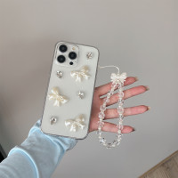 جراب هاتف شفاف شامل مع قوس أبيض ، مناسب لهاتف آيفون 15 بلس ، 14 ، 13 ، 12 ، 11 برو ماكس ، فتاة ، 15 بلس ، حزام ، شامل كليًا