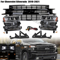 مصابيح أمامية LED للسيارة مع شبكة أمامية لسيارة شيفروليه سيلفرادو 1500 2019 2020 2021 ، ترقية منخفضة ، جزء قاعدة مصباح التكوين المتوسط