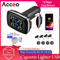 ACCEO-ولاعة سجائر ذكية TPMS إنذار ضغط إطارات السيارة ، نظام مراقبة ، عرض 4 أجهزة استشعار ، إنذار درجة الحرارة ، USB ، TPMS