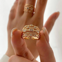 خواتم شمس نسائية مطلية بالذهب عيار 18 قيراط من الفولاذ المقاوم للصدأ ، حجر طبيعي ، مرصعة بأجوف ، نسيج معدني ، مجوهرات عصرية ، newa ،
