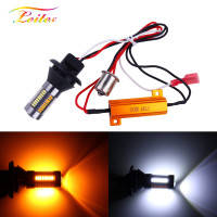 2 قطعة T20 W21W 1156 Ba15s P21W PY21W Bau15s LED بدوره مصباح إشارة DRL Canbus لا خطأ ثنائي اللون LED ضوء السيارة الأبيض العنبر