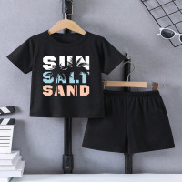 طقم تيشيرت بأكمام قصيرة مطبوع للأولاد بنمط أحادي ، طقم شورت رياضي ، موضة كاجوال ، جديد ، صيفي