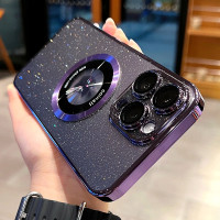 فاخر بريق لاسلكي شحن Magsafe قضية الهاتف آيفون 12 13 14 برو ماكس شفاف المغناطيسي واضح الوفير حالات غطاء