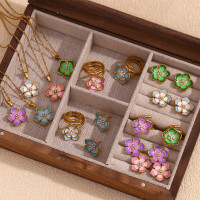 ه. ب. بتلات ملونة من المينا الحسناء للنساء ، خاتم مطلي بالذهب عيار 18 قيراط ، فولاذ مقاوم للصدأ 316 لتر ، قلادة وأقراط
