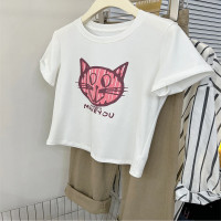 طفل قصيرة الأكمام الجولة الرقبة ارتداءها ، لطيف الثعلب الصغير ، عادية ، كل القطن ، الفتيان والفتيات نمط ، الربيع والخريف
