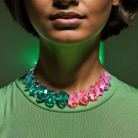 الأخضر والوردي قطرة الماء كريستال المختنق ، غير النظامية خياطة قلادة ، طوق ، اكسسوارات الزفاف ، مجوهرات هدية ، موضة