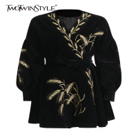 Twotwinstyle أنيقة المرقعة فستان للنساء ، فستان قصير مع التطريز ، الخامس الرقبة ، فانوس كم ، عالية الخصر ، جديد