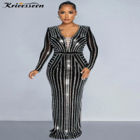 فستان طويل من قطعة واحدة مع أحجار الراين للنساء ، أحمر وفضي ، ثوب حفلة فاخر ، ملابس المشاهير ، ملابس العام الجديد