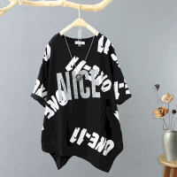 تي شيرت قطني 100% للسيدات مطبوع عليه حروف أدبية تي شيرت بأكمام قصيرة تي شيرت نسائي غير منتظم تي شيرت قصير فضفاض صيفي