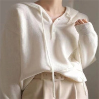 سترة نسائية كبيرة الحجم محبوكة بغطاء رأس ، بلوفر بأكمام طويلة ، توبات نسائية ، ملابس خارجية محبوكة ، دافئة ، سحب ، شتاء ، خريف