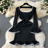 فستان نحيف مكشوف الظهر من SINGREINY ، رقبة مستديرة ، أكمام طويلة مضيئة ، فستان ملاصق للجسم ، قصة ضيقة ، أنيق ، أنيق ، أنيق ، أنيق ، كشكش حفلات عتيق