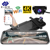 E-ACE 4K جهاز تسجيل فيديو رقمي للسيارات مرآة الترا HD 3840*2160P Dashcam مسجل فيديو للرؤية الليلية 1080P كاميرا خلفية دعم نظام تحديد المواقع واي فاي للسيارات