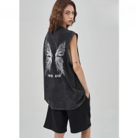 توب نسائي بدون أكمام مطبوع على شكل فراشة ، قطن ، خمر ، أسود ، غسيل حمضي ، فاسق ، قوطي ، قمم ، تيشيرتات ، ملابس ، Y2K ، للجنسين
