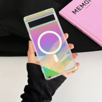 حافظة Magsafe لجوجل بيكسل 8 ، 7 برو ، 7A ، 5 جم ، ليزر متدرج ، شفاف ، شحن لاسلكي مغناطيسي ، سيليكون ، غطاء صلب للصدمات