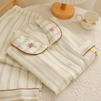 بيكامات مخططة للنساء ، بنطلون حريري بأكمام طويلة ، سترة ، طقم ملابس منزلية ، زر بسيط ، الربيع والصيف ، جديد