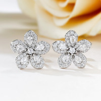 أقراط فضة إسترليني S925 للحفلات ، طراز فاخر خفيف ، زهرة بخمس بتلات ، عصرية وبراقة