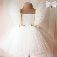 فستان أبيض للتعميد للأطفال 12 متر فستان بناتي بأكمام مكشكشة لحفلات أعياد الميلاد فستان أميرة توتو للبنات فستان حفلات زفاف 1st من القماش