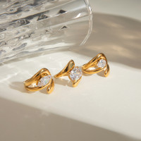 خاتم مفتوح كبير للنساء من الفولاذ المقاوم للصدأ ، مطلي بالذهب عيار 18 ، على شكل قطرة ماء ، ترصيع الزركون ، مضاد للحساسية ، مجوهرات معدنية جذابة