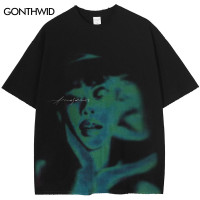 بنطلون عتيق كبير الحجم للرجال ، ملابس الشارع على الهيب هوب ، طباعة رسومية مجردة ، تي شيرت بالأسى ، هاراجوكو قوطي ، تي شيرت فضفاض ،