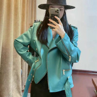 سترة جلد صناعي للنساء ، معطف بأكمام طويلة ، دراجة نارية رياح كورية أزياء جوكر عالية الجودة ، خريف وشتاء جديد ، 2024