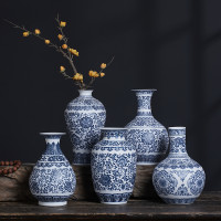 جينغدتشن-مزهريات زهور بورسلين زرقاء وبيضاء ، مزهرية سيراميك ، تصميم لوتس متشابك ، ديكور منزلي