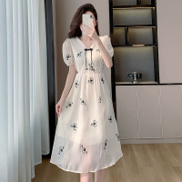 فستان نسائي صيفي بطبعة زهور ، إبزيم طبق صيني ، رقبة على شكل حرف V ، مطرز ، فساتين أنيقة ، ملابس بخصر مرتفع ، جديد