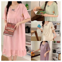 ثوب نوم نسائي بأكمام قصيرة ، بيجامات فضفاضة ، النسخة الكورية ، ملابس صيفية ، يمكن ارتداؤها خارج الدهون ، ملابس منزلية ، مقاس كبير